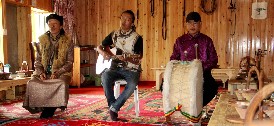 进入图瓦人家木屋,围坐成一圈,品尝香醇的奶酒奶酪和民族点心, 聆听特有的民族乐器-苏尔演奏婉转的曲调, 其苇管独奏悠远悠长, 恍若隔世,伴随原汁原味的音乐欣赏蒙 古族图瓦人的豪放有力的。
