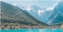 【蓝月谷】(不含电瓶车60元/人)其前身为早前人们所熟知的“白水河”。在晴天时水的颜色是蓝色的,而且山谷呈月牙形,远看就像一轮蓝色的月亮镶嵌在玉龙雪山脚下,所以名叫蓝月谷。